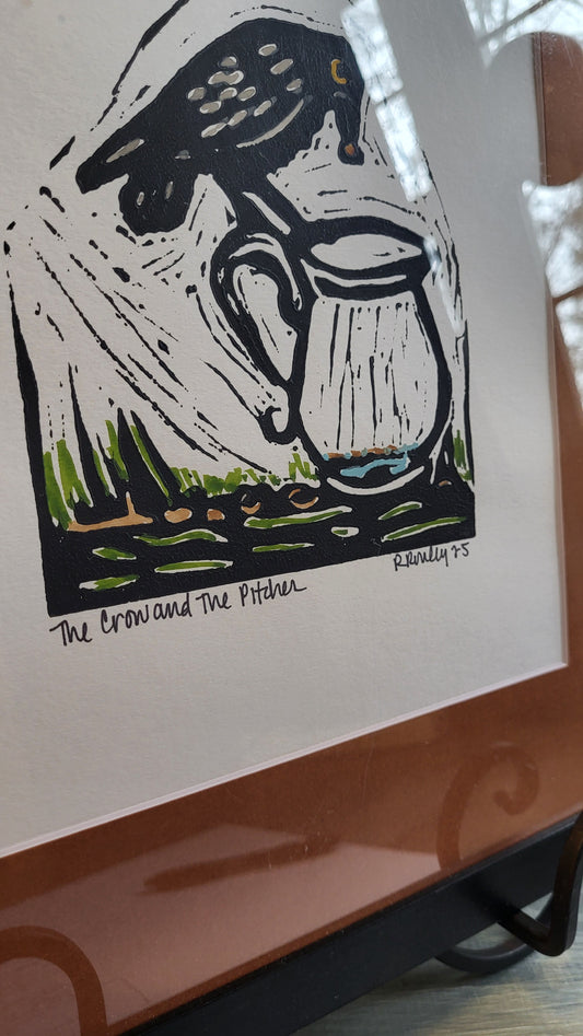 The Crow and the Pitcher-Framed- 8x10-Original Art