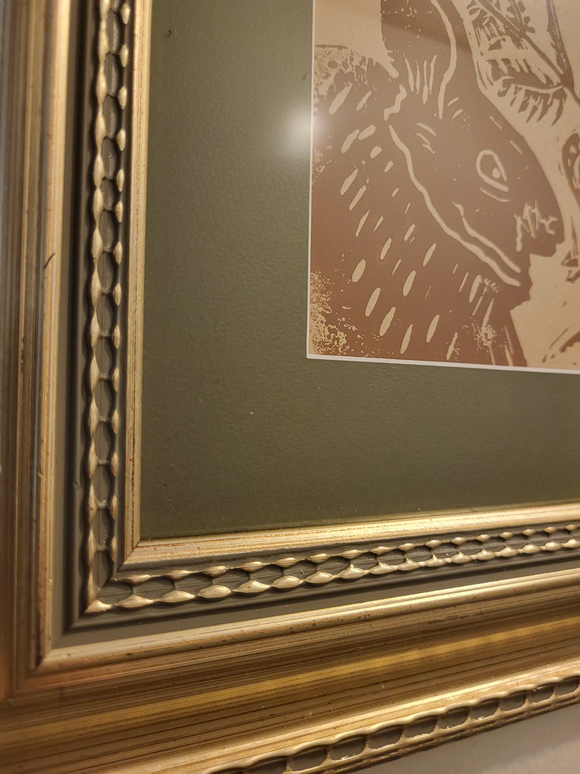 Rabbit in Ferns - Burnt Sienna ink on natural paper